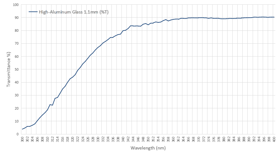 晶科纯玻璃微结构扩散片 - 高铝玻璃基材透过率曲线(紫外)