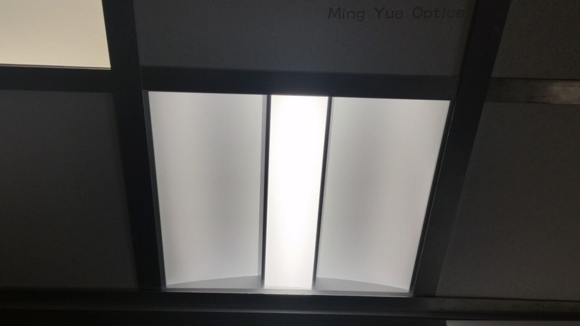 六边形微结构阵列(X-GHM) 如同为灯具加载"眩光过滤器",精准截断65°以上的高角度眩光,将UGR眩光指数压至19以下(符合欧盟标准)。双膜叠加(X-G85+X-GHM) 则在遮蔽灯珠的同时,进一步抑制眩光,使光线如晨光般自然倾泻。
