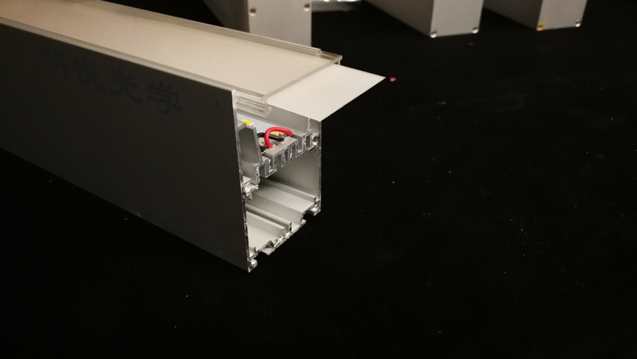 痛点:传统条形灯使用的挤出成扩散型材没有防眩光效果,而且批次一致性难以保证。另外条形灯通常光通量大,发光面积小,使用挤出带棱镜结构的型材,UGR抑制效果不理想。