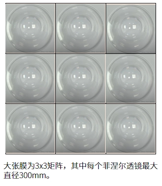 ● N-C系列菲涅尔透镜膜为630*630mm大张,每个大张包含3x3菲涅尔透镜单元,每个菲涅尔透镜最大直径300mm。